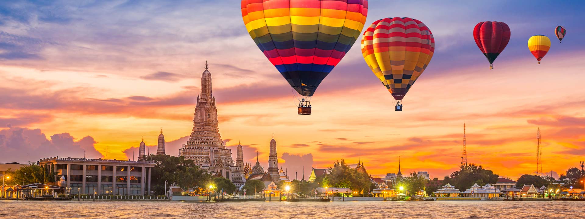 In the afternoon, you will take a long-tailed boat along the Chao Phraya River to see Thai life. You will pass the Grand Palace and pay a brief visit to the Royal Barge Museum, which houses ceremonial King's Barges decorated with multi-colored glass, gilt and stucco. You will disembark at Wat Arun , the "Temple of Dawn", to visit the tallest prang in Thailand.