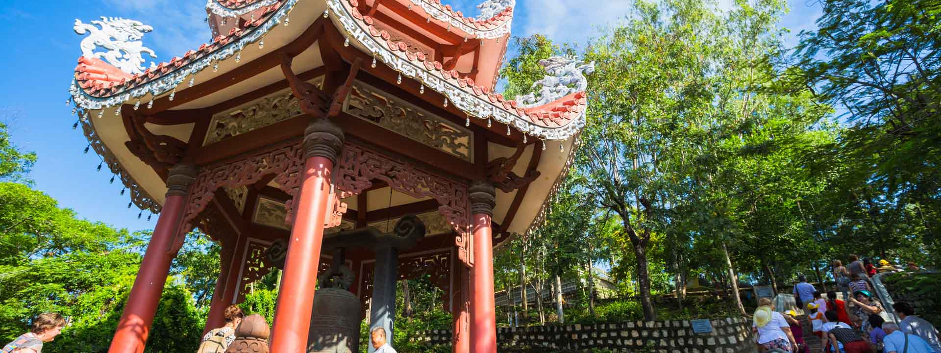 Travel across the countryside by car, viewing the rice paddies, orchards and cattle or buffaloes at work. You will meet rural people and find out how they earn a living and see highlights and places such as: charcoal stove (pottery) making house, a sedge mat weaving village (you can try weaving), fish cake frying house, bakery, rice paper steaming village, conical hat making village, soya milk making house, ancient house with bonsai garden (180 years, enjoy fruits and green tea). Visit Long Son Pagoda (the biggest one in Nha Trang with a white giant Buddhist statue on the hill top) Lunch in a restaurant on the riverside.