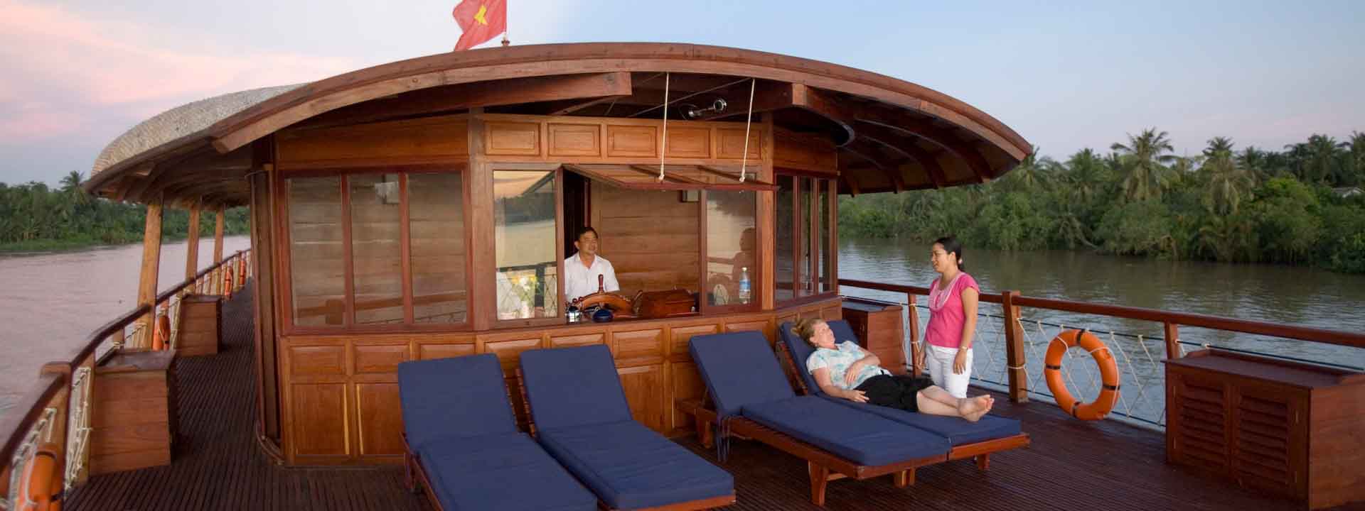 Spend the day on the beautiful Cai Be Princess exploring the fascinating life on the Mekong River. Visit a floating market, a beautiful island and lunch at a superb Indochine restaurant, this trip is the ideal way to spend the day on the delta in style.