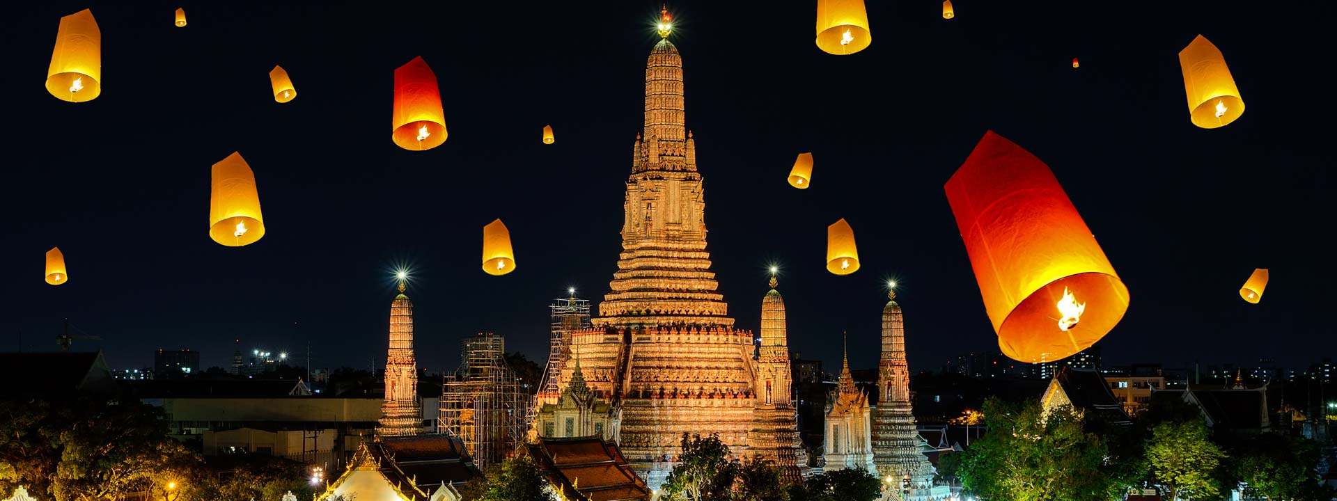 In the afternoon, you will take a long-tailed boat along the Chao Phraya River to see Thai life. You will pass the Grand Palace and pay a brief visit to the Royal Barge Museum, which houses ceremonial King's Barges decorated with multi-colored glass, gilt and stucco. You will disembark at Wat Arun , the "Temple of Dawn", to visit the tallest prang in Thailand.