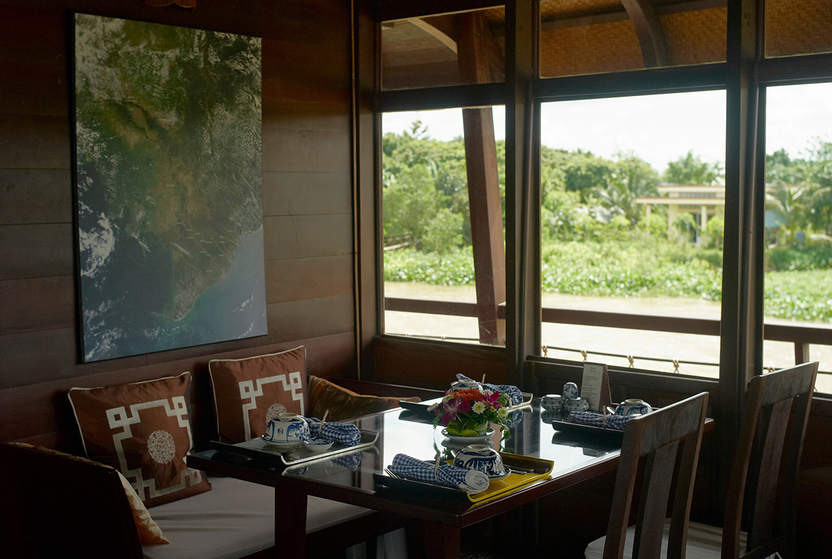 - Boarding back, complimentary drink as a welcome back on board. Rest on the deck or around the bar enjoying the sunset.The crew will serve dinner while the Bassac is cruising Mang Thit river.