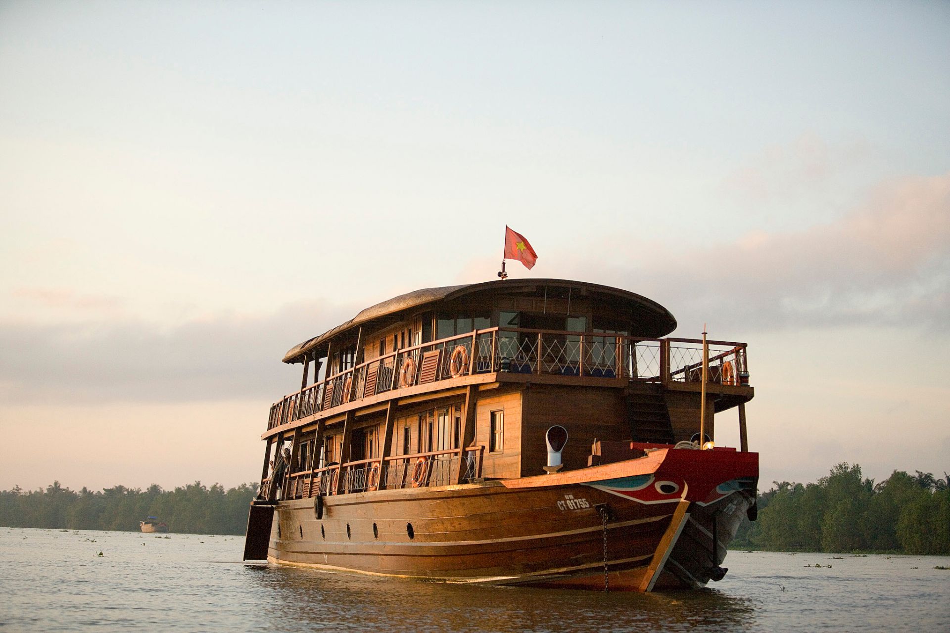 The Bassac sets anchor just downstream from Tra On for the night.